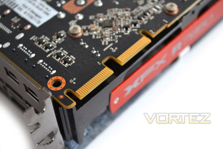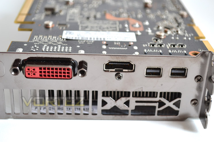 The I/O vent is unique in that it has the XFX logo carved out of the metal. Other than that the standard DVI, HDMI 1.4a and twin 1.2 mini-display ports of which they are 4K resolution ready.
